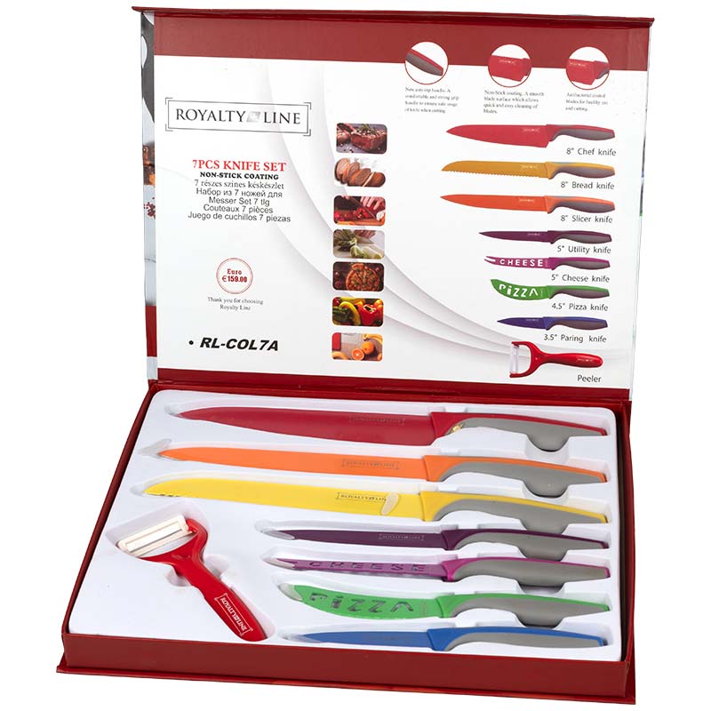 - Vielseitigkeit: Mit sieben verschiedenen Messern, darunter Kochmesser, Käsemesser und Pizzamesser, bist du für alle Kochvorgänge bestens ausgestattet.