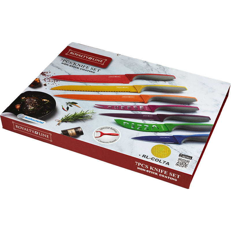 - Trendiges Design: Das moderne Erscheinungsbild des Messersets von Royalty Line fügt sich stilvoll in jede Kücheneinrichtung ein.