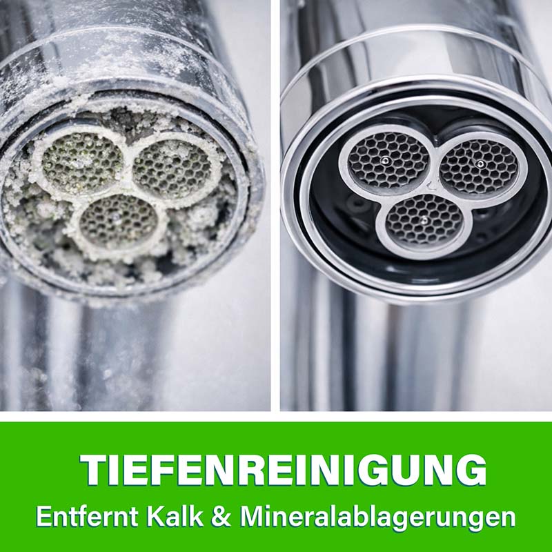 Gerade im Sanitärbereich wird der Unterschied sofort sichtbar: Duschköpfe liefern wieder vollen Wasserdruck, Armaturen erscheinen klar und glänzend und Fliesen wirken deutlich gepflegter. In der Küche profitieren Geräte wie Kaffeemaschinen und Wasserkocher von einer verbesserten Funktion und einer längeren Lebensdauer.