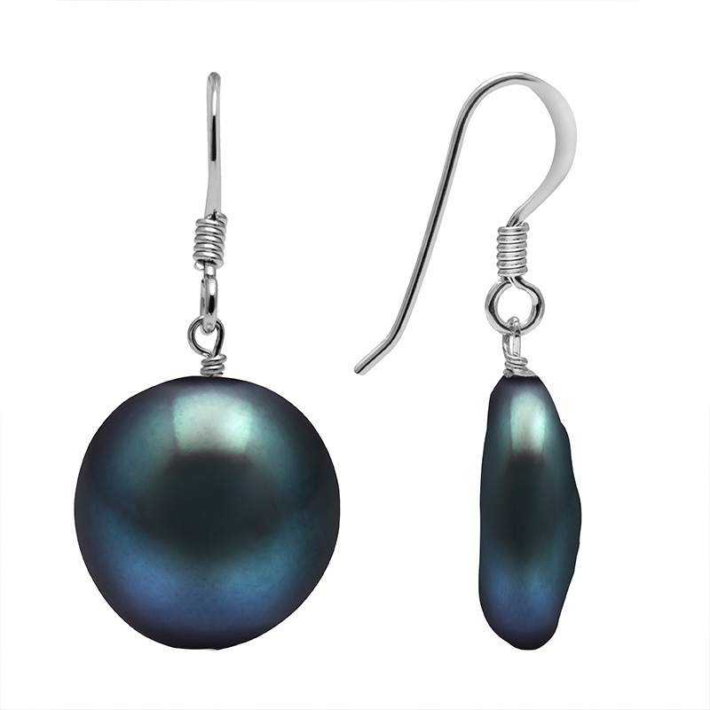 Diese wunderschönen Coin Pearl Drop Ohrringe sind aus herausragenden Pfau 12mm Süßwassermünzenperlen gefertigt. Mit Angelhaken in 925er Sterlingsilber-Finish.