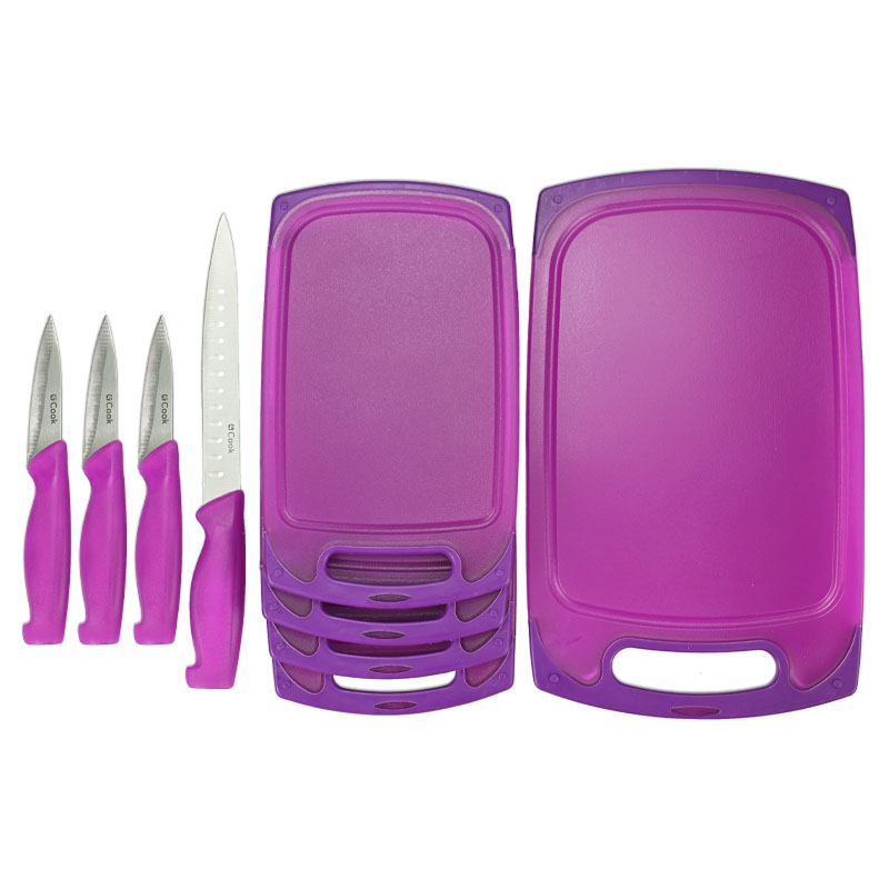 Das Schneidebrett Set ist perfekt für jede Küche. Es enthält fünf Schneidebretter in zwei verschiedenen Größen und vier Messer in zwei verschiedenen Größen. Mit diesem Set kannst du alle Schneidearbeiten ganz einfach erledigen.