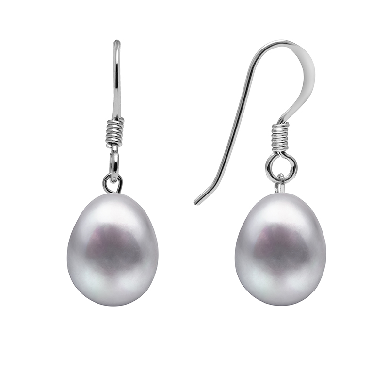 Süßwasserperlen Angelhaken Ohrringe (Grau), 925 Silber