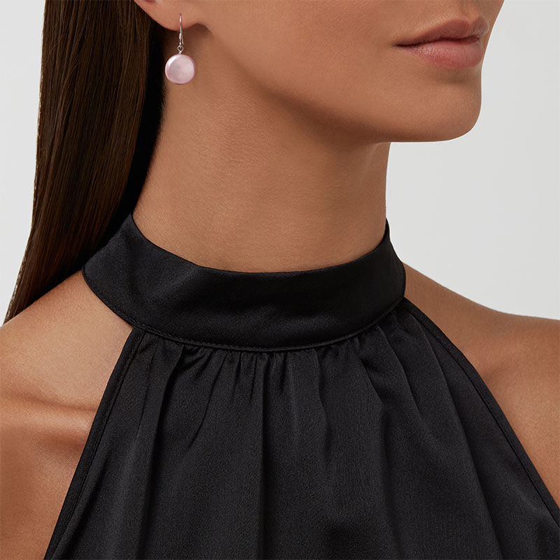 Diese wunderschönen Coin Pearl Drop Ohrringe sind aus herausragenden Rosa 12mm Süßwassermünzenperlen gefertigt. Mit Angelhaken in 925er Sterlingsilber-Finish.