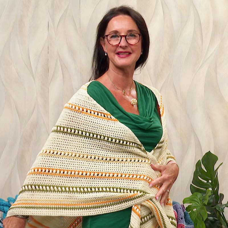 - Inklusive Anleitung für das Dreiecktuch (Grösse fertiges Tuch: ca 180 x 90cm)